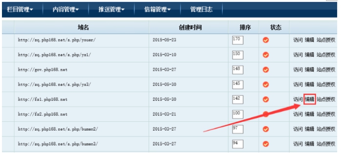 如:http://zq.php168.net/admin.php/sites-index admin admin8888