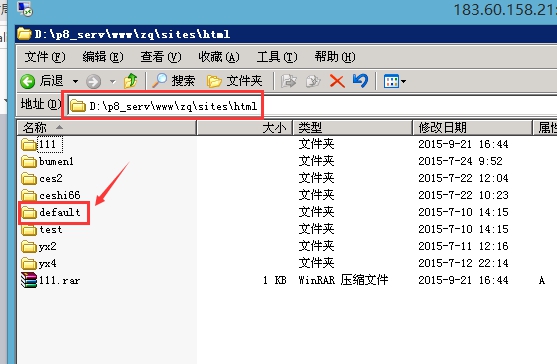 我們先進入站群分站的目錄,其中zq是我們現在整個網站安裝的目錄;我們看到一個yx4(對照網站后臺那個同名);如果有此文件,我們直接下一步綁定即可。