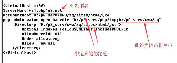 B:每一個分站配置,都會有下面一段這樣的設置;只是里面的域名設置和分站路徑不同而已。